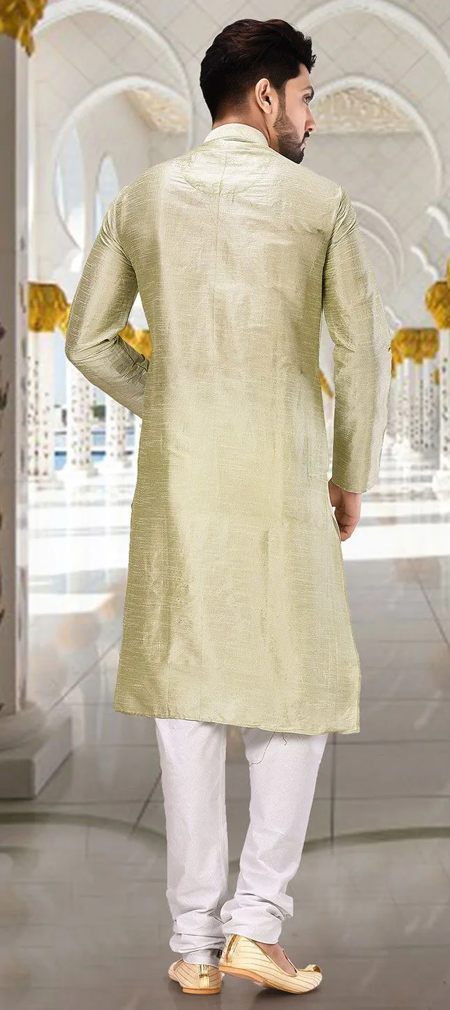 Green color Kurta Pyjamas in Art Dupion Silk fabric with Thread work