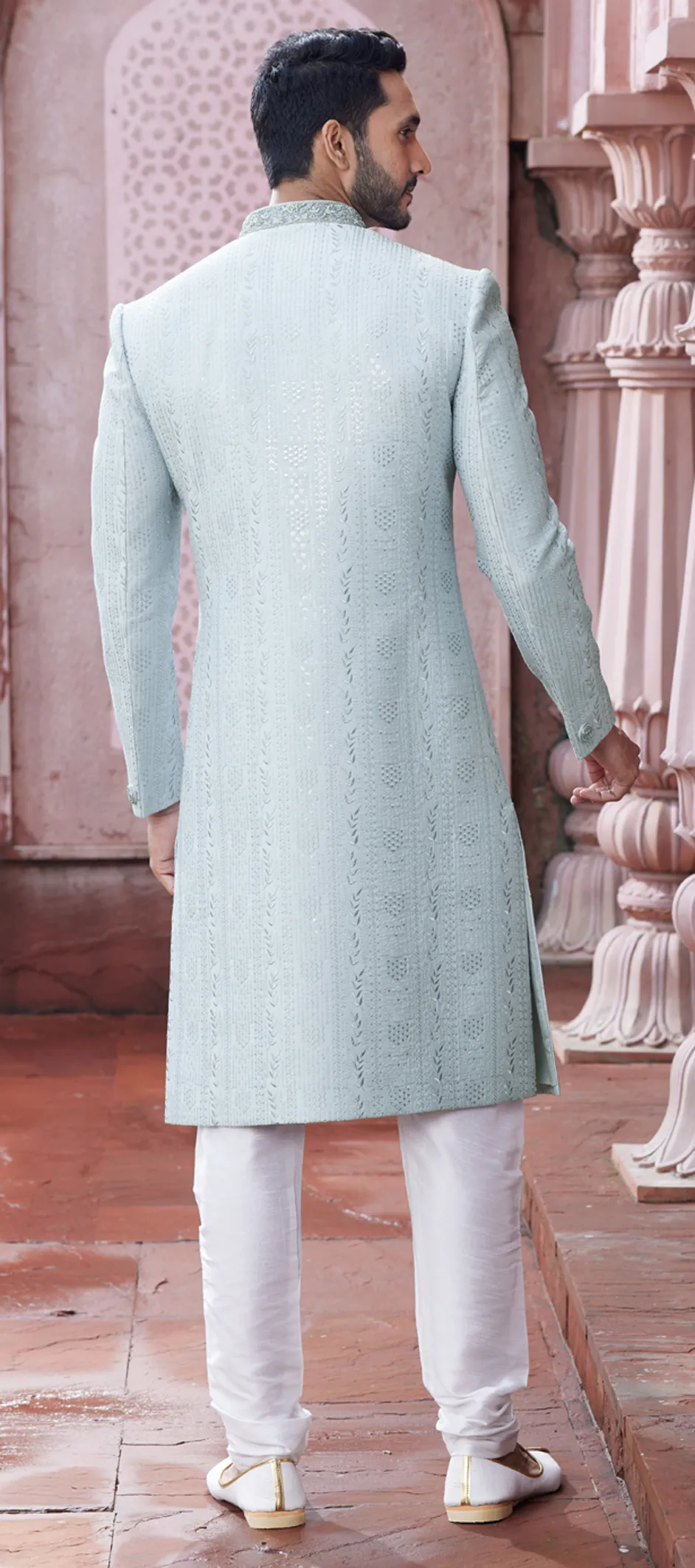 Blue color Sherwani in Art Silk fabric with Embroidered, Resham, Sequence, Thread work